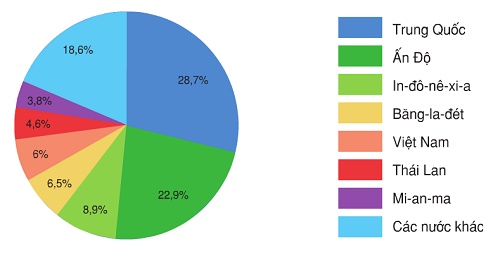 Câu 2: Dựa vào hình 8.2 em hãy cho biết những nước naò ở Châu Á sản xuất nhiều lúa gạo và tỉ lệ so với thế giới là bao nhiêu?