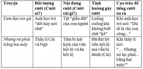 Căn cứ vào hai truyện cười đã học, lập bảng và ghi nội dung trả lời theo mẫu