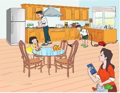 Quan sát bức tranh trên, chúng ta thấy từng thành viên trong gia đình bạn Hà đang làm: