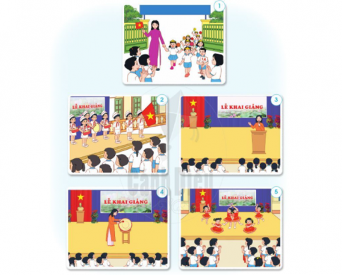 • Nói về một số hoạt động trong ngày khai giảng trong các hình dưới đây?