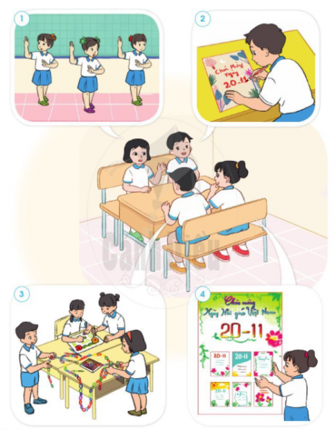 • Em cùng bạn thực hiện một hoạt động chào mừng Ngày Nhà giáo Việt Nam.