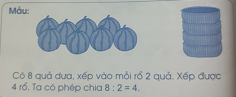 Bài 2. Xem tranh rồi nói và viết phép chia (theo mẫu):