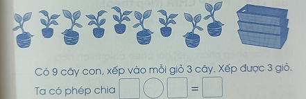 Bài 3. Xem tranh rồi viết một tình huống có phép chia: