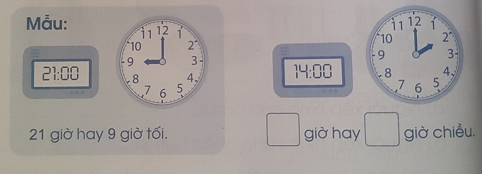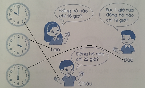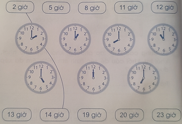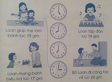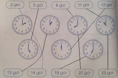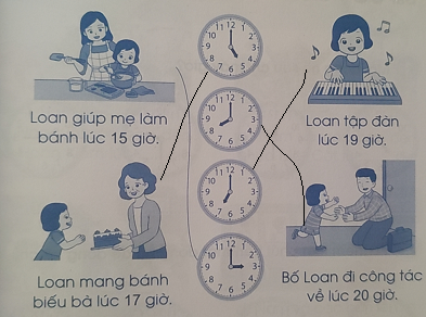 Bài 3. Nối mỗi tranh vẽ với đồng hồ thích hợp (theo mẫu):