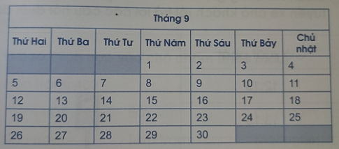 a) Mai học vẽ vào thứ Năm hàng tuần. Trong tháng 9, Mai học vẽ .... buổi, đó là những ngày: ..........................