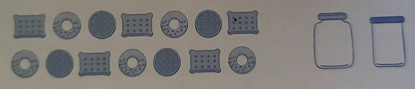 Có 14 chiếc bánh xếp đều vào 2 chiếc lọ, mỗi lọ có 7 chiếc bánh.