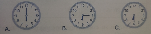 Hiền ngủ dậy lúc 6 giờ sáng, sau 15 phút Hiền ngồi vào bàn ôn bài. Đồng hồ nào dưới đây chỉ thời gian Hiền bắt đầu ngồi vào ôn bài?