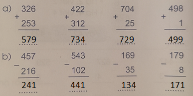 200 + 400 = .... 600 - 100 = .... 300 + 60 + 7 = ....