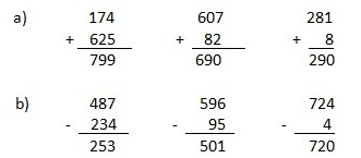 700 + 300 = 1000 1000 - 200 = 800 900 + 90 + 9 = 999