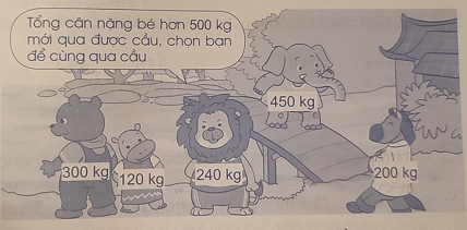 b) Không thể chọn bạn để cùng qua cầu vì tổng cân nặng lớn hơn 500kg