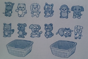 b) Viết phép nhân hoặc phép chia thích hợp với mỗi tranh vẽ: