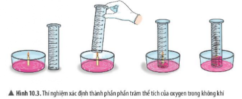 - Từ kết quả thí nghiệm, xác định phần trăm thể tích của oxygen trong không khí. So sánh với kết quả trong biểu đồ hình 10.2.