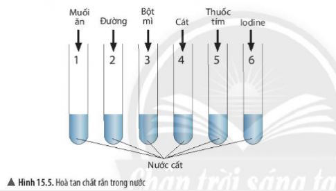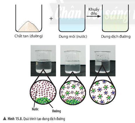 - Dựa vào hình 15.8, em hãy mô tả quá trình tạo ra dung dịch