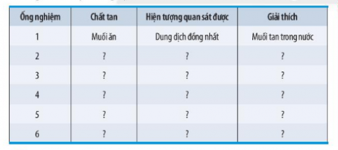 Thí nghiệm 2: Hoà tan các chất rắn trong nước