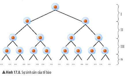 - Hãy tính số tế bào con được tạo ra ở lần sinh sản thứ I, II, III của tế bào trong sơ đồ hình 17.8. Từ đó, xác định số tế bào con được tạo ra ở lần sinh sản thứ n