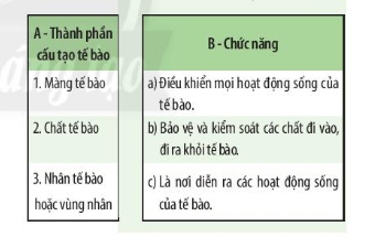 - Xác định chức năng các thành phần của tế bào băng cách nối mỗi thành phần cấu tạo ở cột A với một chức năng ở cột B