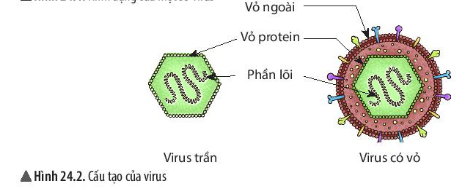 - Quan sát hình 24.2, nêu cấu tạo của virus. Cấu tạo của virus có gì khác so với cấu tạo của tế bào sinh vật nhân sơ và nhân thực mà em đã được học?
