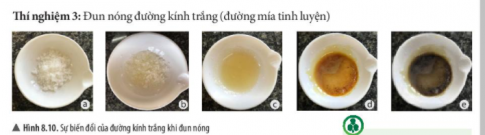 - Trong thí nghiệm 3, hãy chỉ ra quá trình nào thể hiện tính chất vật lí, tính chất hóa học của đường