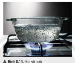 - Khi đun sôi nước, em quan sát thấy có hiện tượng gì trong nồi thủy tinh?