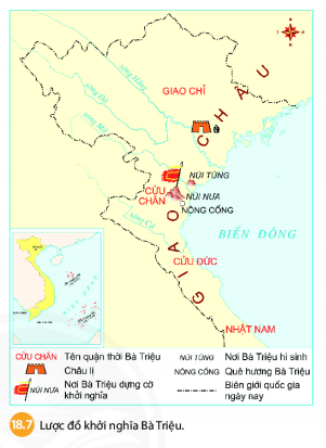 - Dựa vào lược đồ 18.2, em hãy trình bày diễn biến cuộc khởi nghĩa Hai Bà Trưng