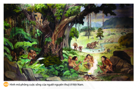 - Quan sát hình 4.8, em hãy cho biết đời sống của người nguyên thủy ở Việt Nam ( Cách thức lao động, vai trò của lửa trong đời sống của họ)