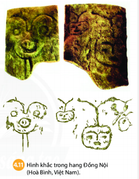 - Em hãy quan sát hình 4.11 và cho biết người nguyên thủy đã khắc hình gì trong hang Đồng Nội?