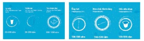 Câu 11.7. Nhựa được dùng làm vật liệu chế tạo nhiều vật dụng khác nhau. Hình dưới đây là một số vật dụng được làm từ chất liệu nhựa và thời gian phân hủy của nó.