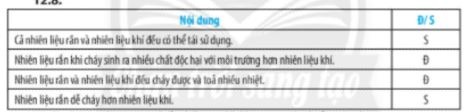 Câu 12.8. Ghi đúng (ĐI, sai (S) vào các càu sau: