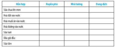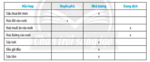 Câu 15.18. Đánh đấu x vào ô phù hợp để xác định trạng thái của các hỗn hợp sau: