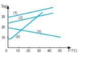 Câu 15.10. Đồ thị sau biểu diễn sự phụ thuộc độ tan (kí hiệu là S (g)/ 100 (g) nước) của các chất X, Y, Z, T theo nhiệt độ.