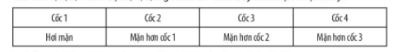thành nước cất, Bạn cho nước cất vào bốn cốc, mỗi cốc 20 ml. Tiếp theo, bạn cho vào cốc 1, 2, 3, 4 lần lượt 2, 4, 6, 8 g muối ăn và khuấy đều. Bạn nhận thấy: