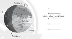 a) Ở các vị trí P, Q đang là ban ngày vì các vị trí này đang được Mặt Trời chiếu sáng. Ở các vị trí M và N đang là ban đêm vì các vị trí này lúc đó không được Mặt Trời chiếu sáng.