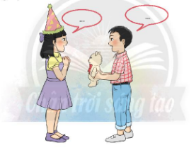b) Cùng bạn nói và đáp lời khen về món quà