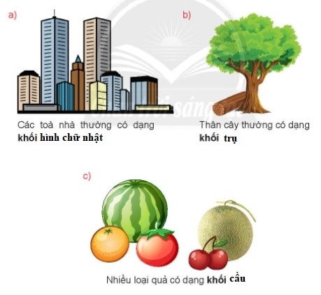 Khối hình chữ nhật: cái vali, cái kệ tủ, quyển sách
