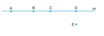 Trong hình bên, cho bốn điểm A,B,C,D thuộc đường thẳng m và điểm E không thuộc đường thẳng m. Hãy nêu các bộ ba điểm thẳng hàng và các bộ ba điểm không thẳng hàng