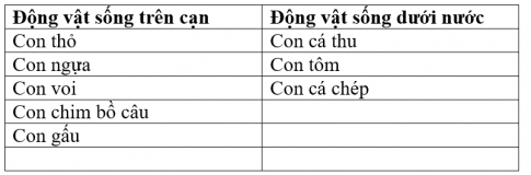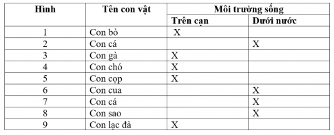 - Em cùng bạn đặt và trả lời câu hỏi về nơi sống của cây và con vật trong các hình dưới đây? Hoàn thành bảng theo gợi ý dưới đây rồi chia sẻ với các bạn trong nhóm?