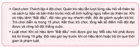 Hoạt động 3: Tham gia trò chơi “Ứng phó với thiên tai”