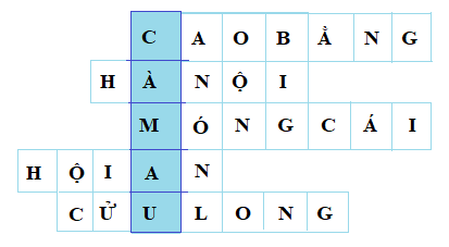 Điền chữ cái vào mỗi ô trống để tìm các địa danh ở hàng ngang và địa danh ở hàng dọc màu xanh.