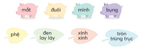 Chọn chiếc lá có từ ngữ chỉ đặc điểm phù hợp với từng bộ phận của con lợn đất.