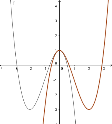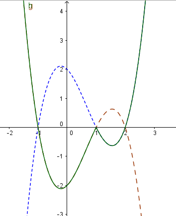 lấy trong khoảng $x \geq 1$ và đồ thị hàm số $y=-(x^{3}-2x^{2}-x+2$ lấy trong khoảng $x