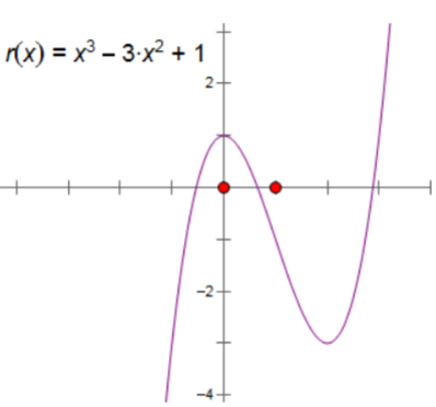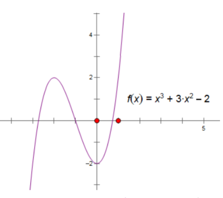 (màu đỏ) là đồ thị đối xứng của đồ thị $y=x^{3}+3x^{2}-2$ (màu xanh) qua trục Ox.