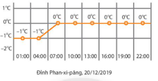 Bài 8. Hình dưới đây cho biết số liệu nhiệt độ ở đỉnh Phan-xi-păng trong ngày 20/12/2019. Theo em, số đo nhiệt độ trung bình trong ngày là phân số nào?