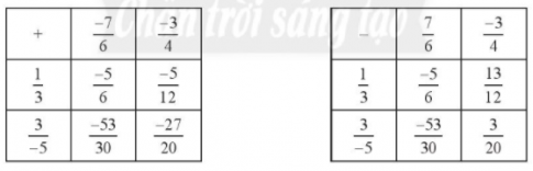Ta có bảng cộng và bảng trừ sau khi đã hoàn thành: