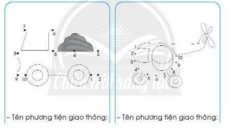 Câu 3. Nỗi các điểm theo thứ tự để được các bức hình hoàn chỉnh. Viết tên phương liện giao thông và tiện ích của chúng vào chỗ (...).