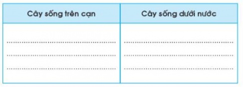 Câu 3. Quan sát các loài cây xung quanh em và viết tên cây vào chỗ (...) ở cột phù hợp.