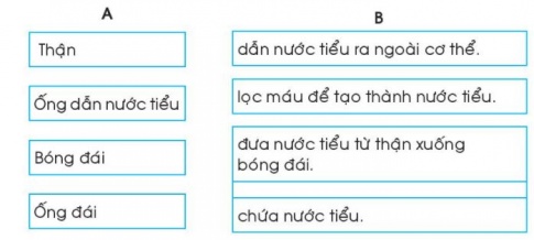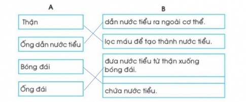 Câu 4. Tô màu các bộ phận của cơ quan bởi tiết nước tiểu có trong hình sau.