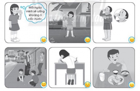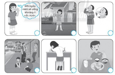 Câu 3. Vẽ mặt cười vào O hình chỉ hành động em đồng tình, vẻ mặt buồn vào O hình chỉ hành động em không đồng tình.