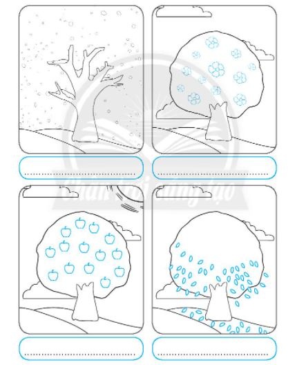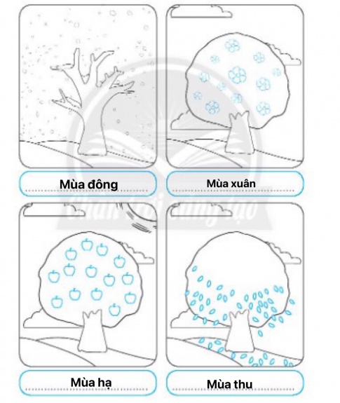 Câu 1. Viết tên mùa phù hợp vào chỗ (...) dưới mỗi hình. Tô màu hình chỉ mùa mà em thích nhất.