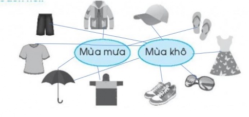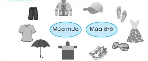 Câu 2. Lựa chọn trang phục phù hợp với mùa mưa và mùa khô bằng cách nối.