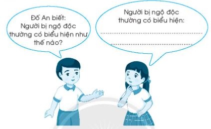 - Người bị ngộ độc thường có biểu hiện: nôn mửa, tiêu chảy, đau bụng dữ dội, đau cơ, da tím tái, khó thở, ngưng thở, co giật, trụy mạch, bất tỉnh.